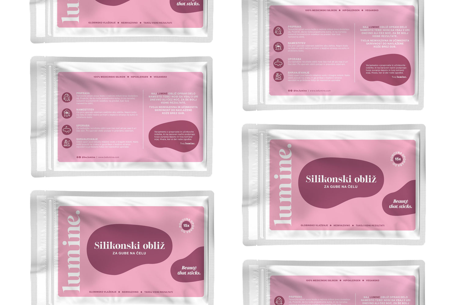 Lumine obliž iz 100% medicinskega silikona na koži ustvari mikroklimo, ki ustvarja okluzijo (zaščitno bariero). Na ta način deluje neposredno na plast kože, ki je najbolj dovzetna za znake staranja in zunanje vplive.