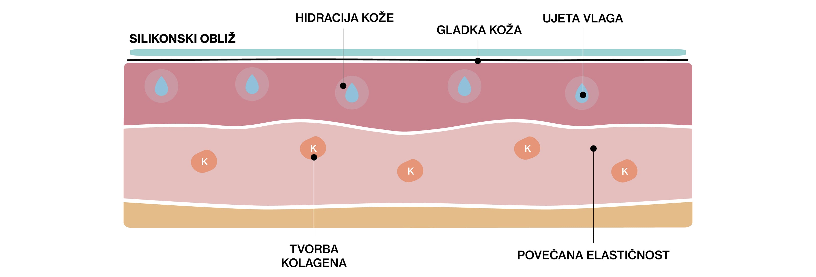 Izboljša se elastičnost kože in spodbuja tvorba kolagena.
